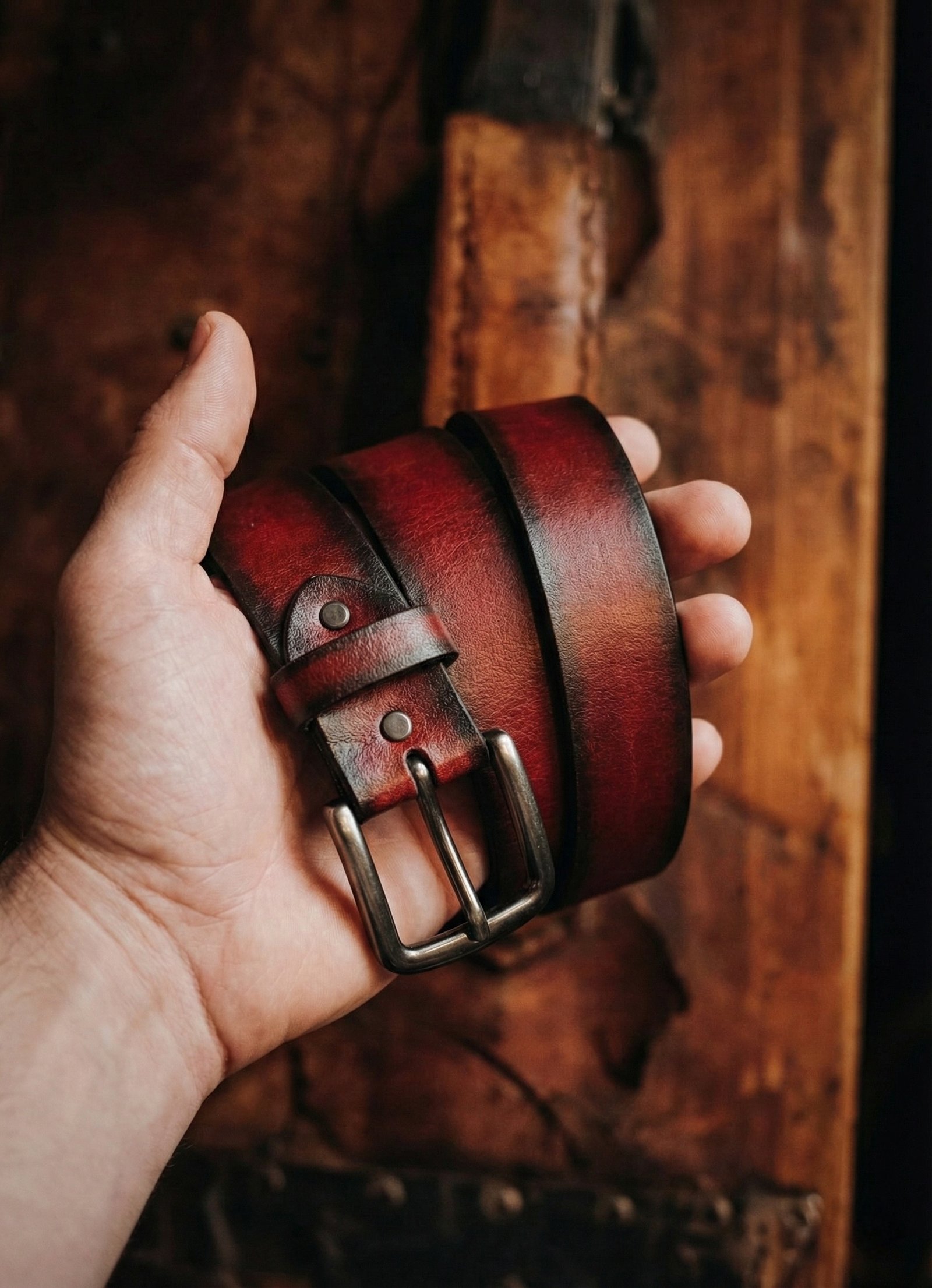 Hand dyed in a rich rusty crimson finish .Solid 3.8 mm thickness for strength that endures every season